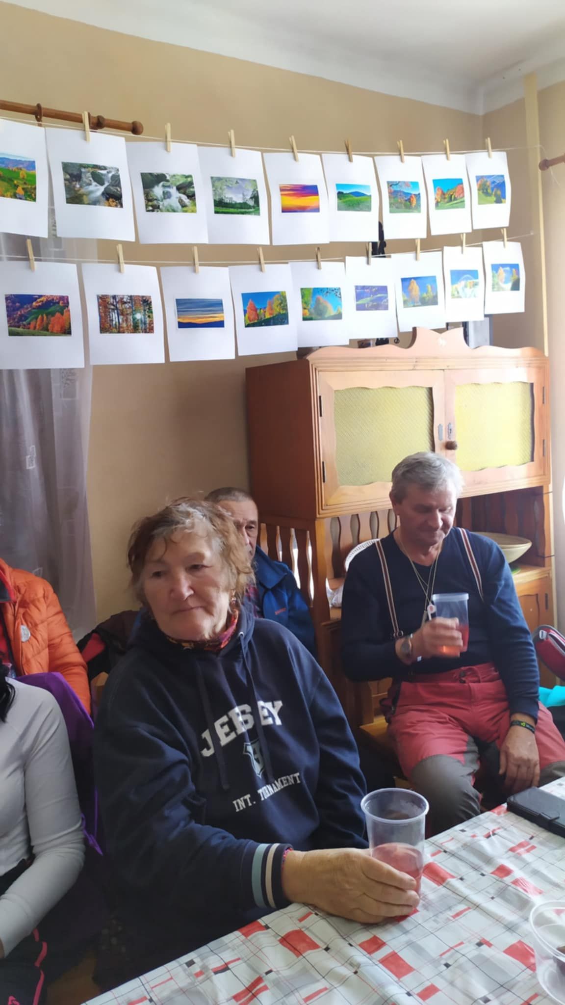Chvíľu si oddýchneme, popozeráme výstavku fotografií a spoločným fotením pred chatou prispejeme tiež do zbierky.