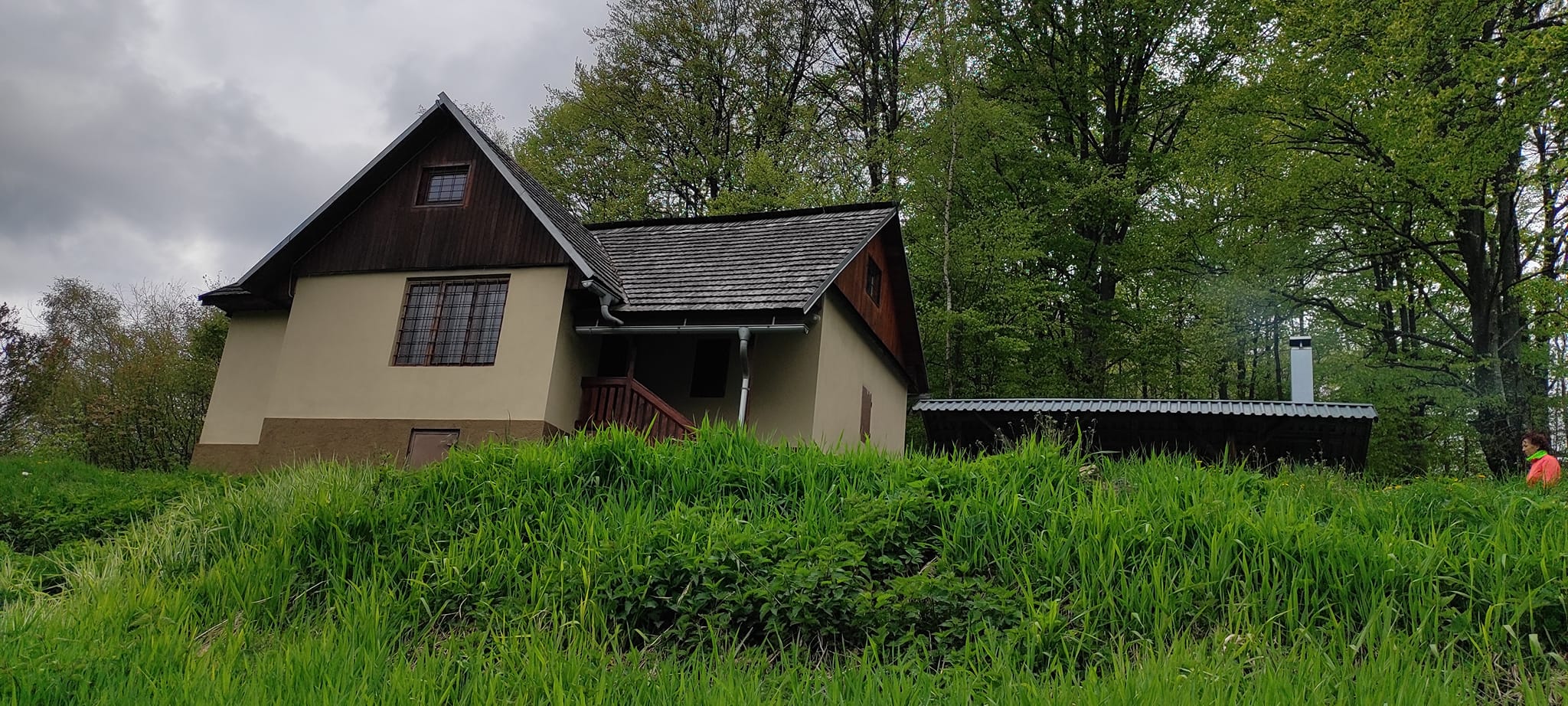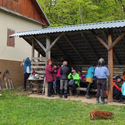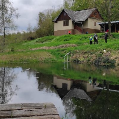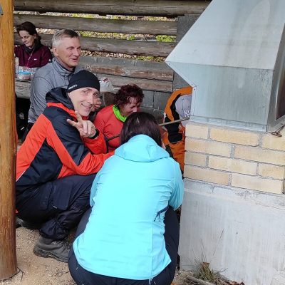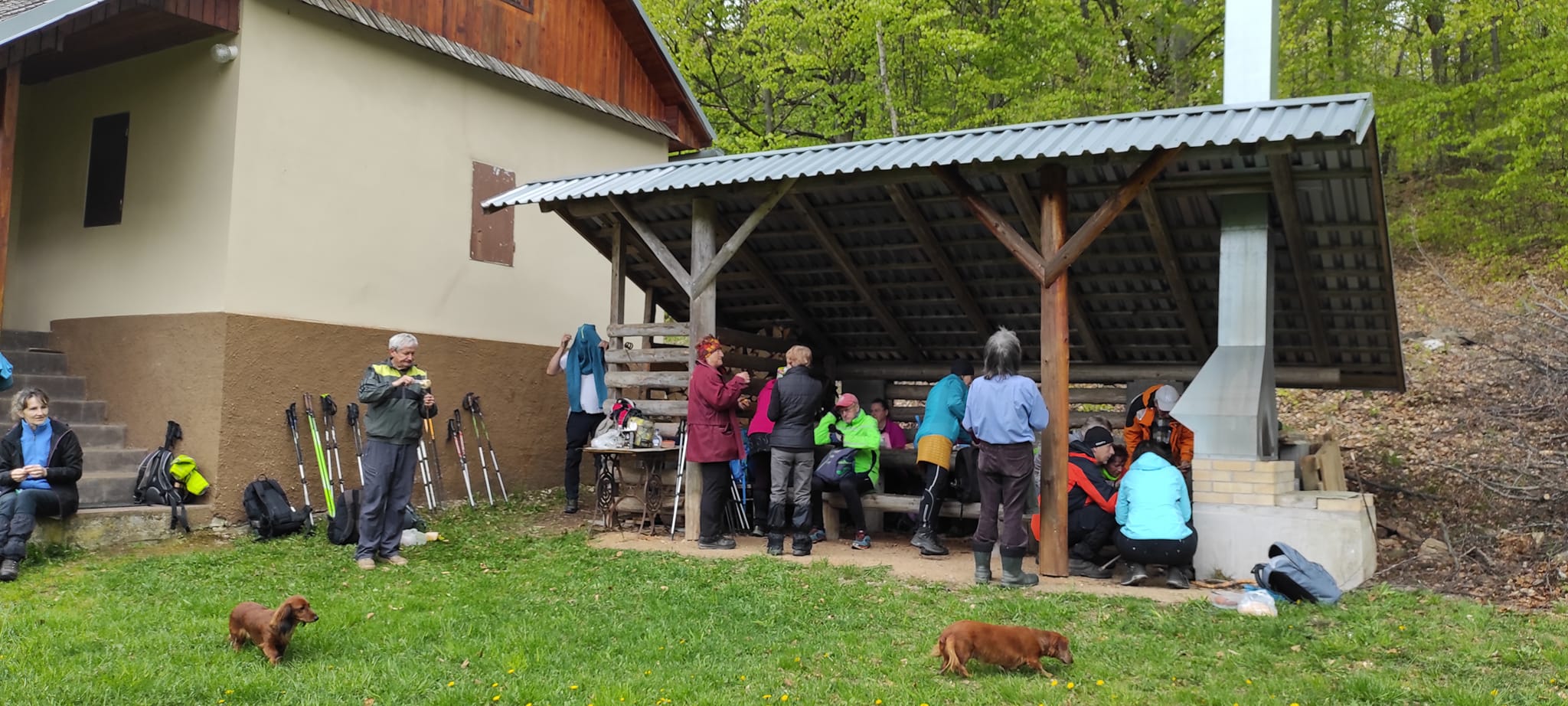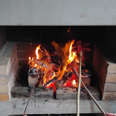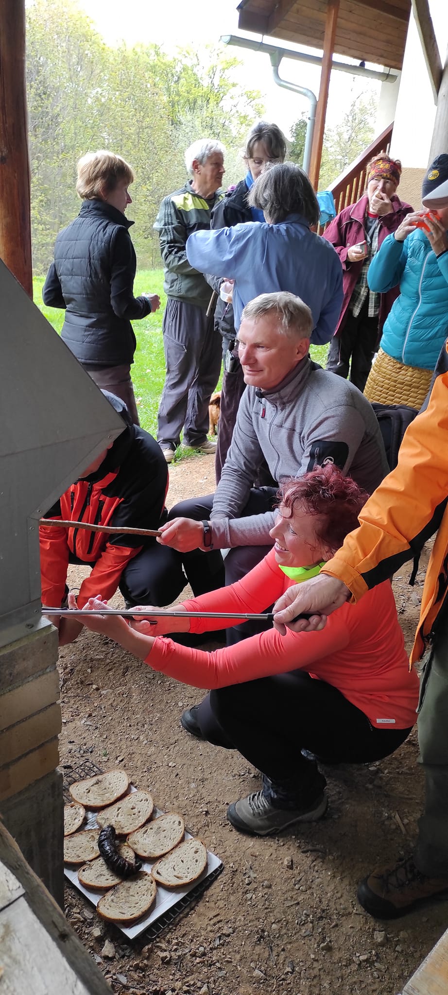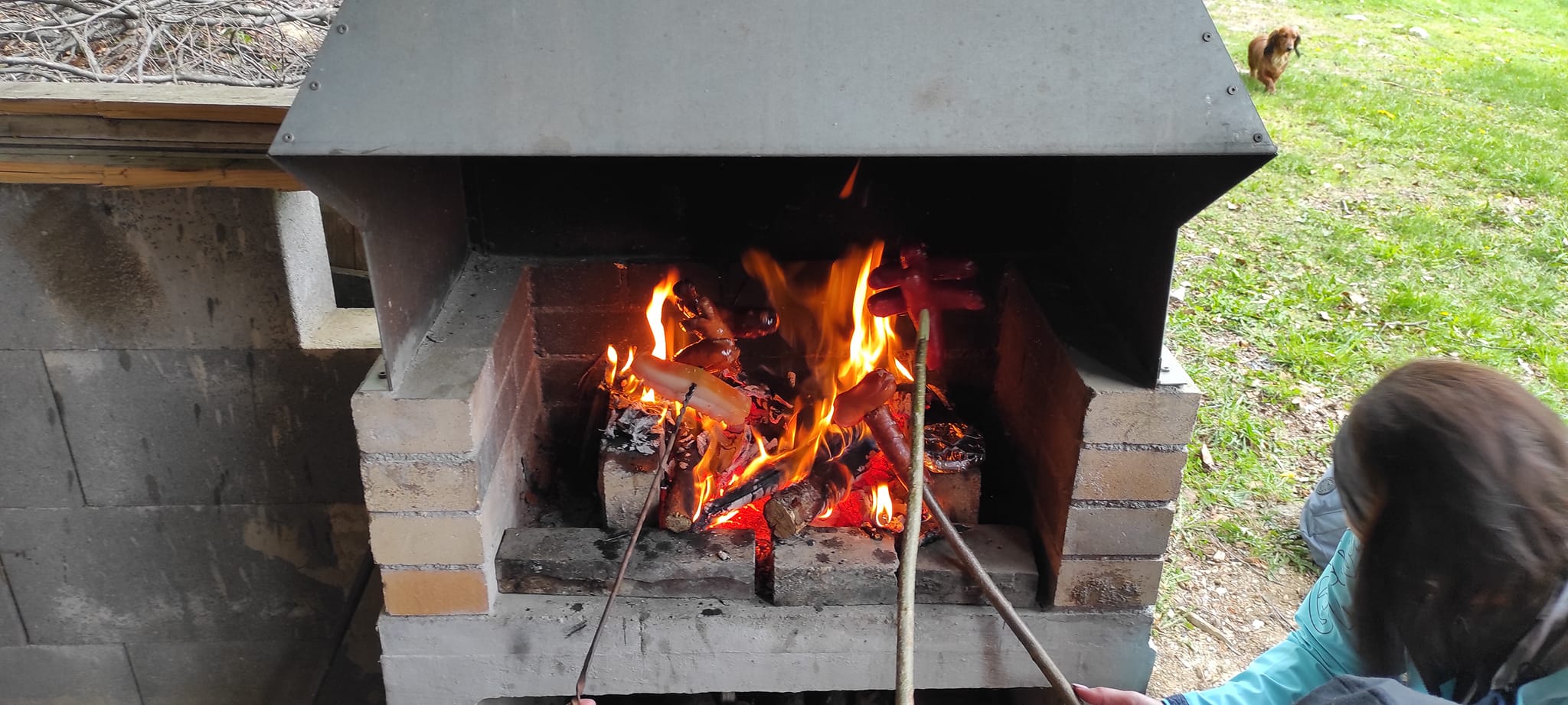 Pri poľovníckej chate tradične opekačka, veď každému dobre padne opečená klobáska, slaninka, cibuľka……