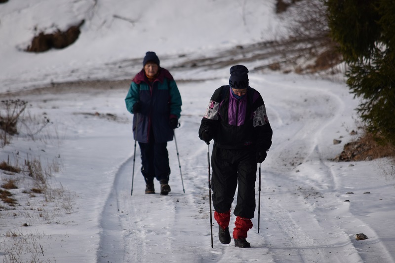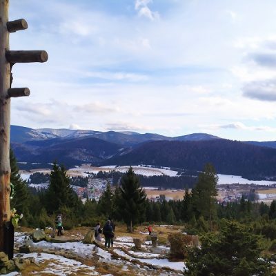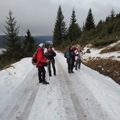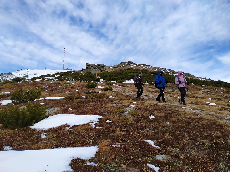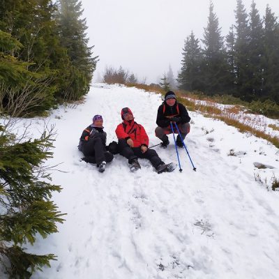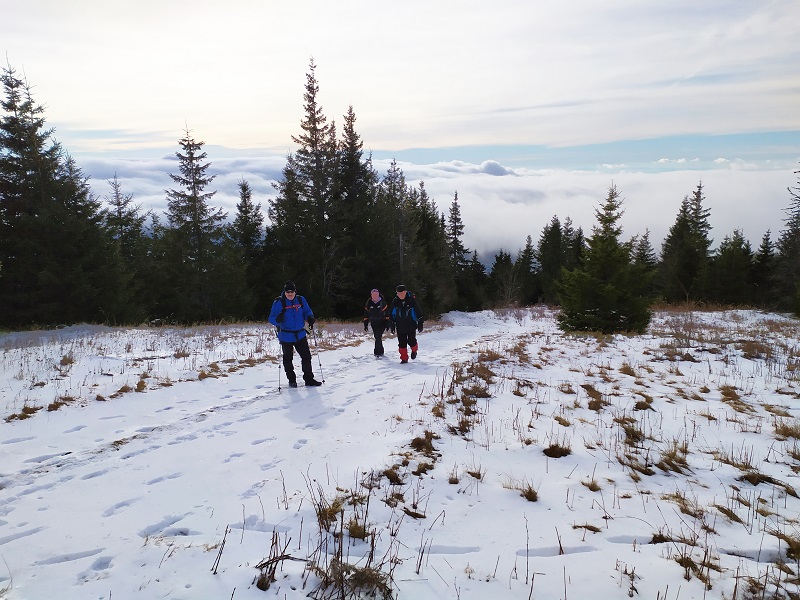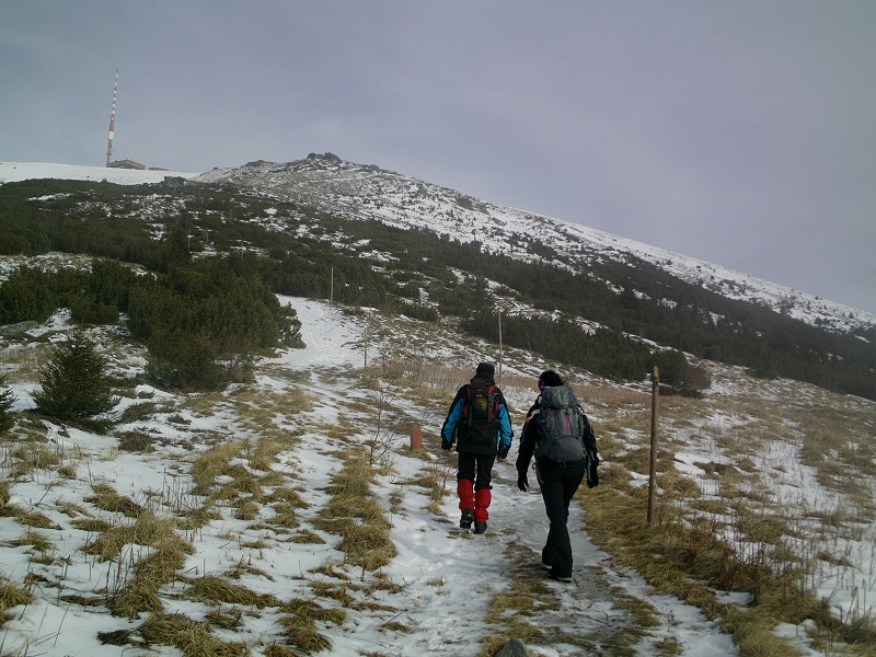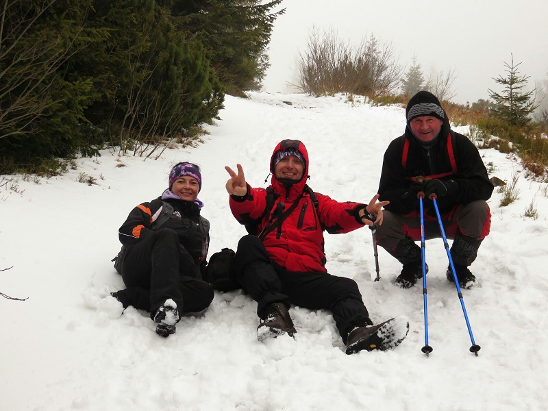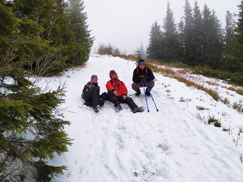 My ostatní, ktorí sme dychtili po náročnejšom teréne, sme si zvolili výstup po modrej značke. Aj keď sme sa na to tešili, brodenie v snehu nám tento raz nehrozilo. Bielej periny bolo poskromne.