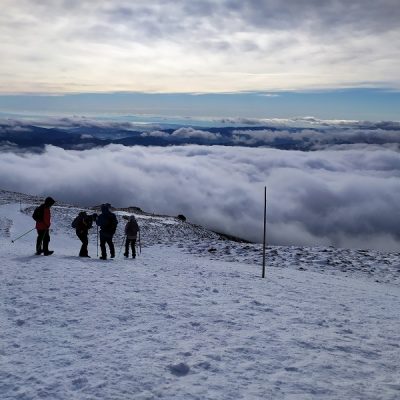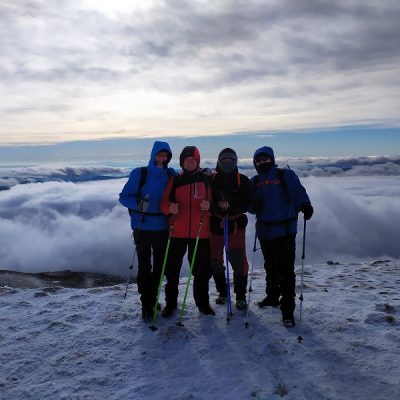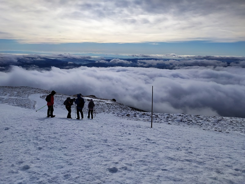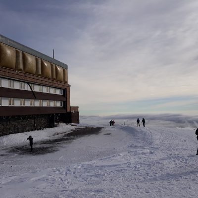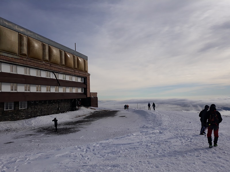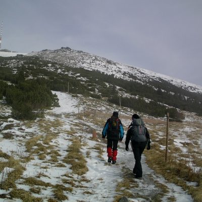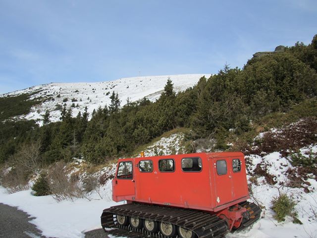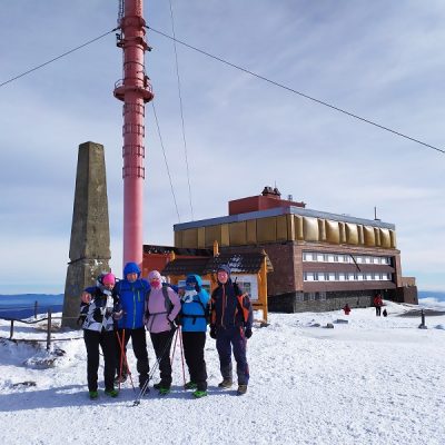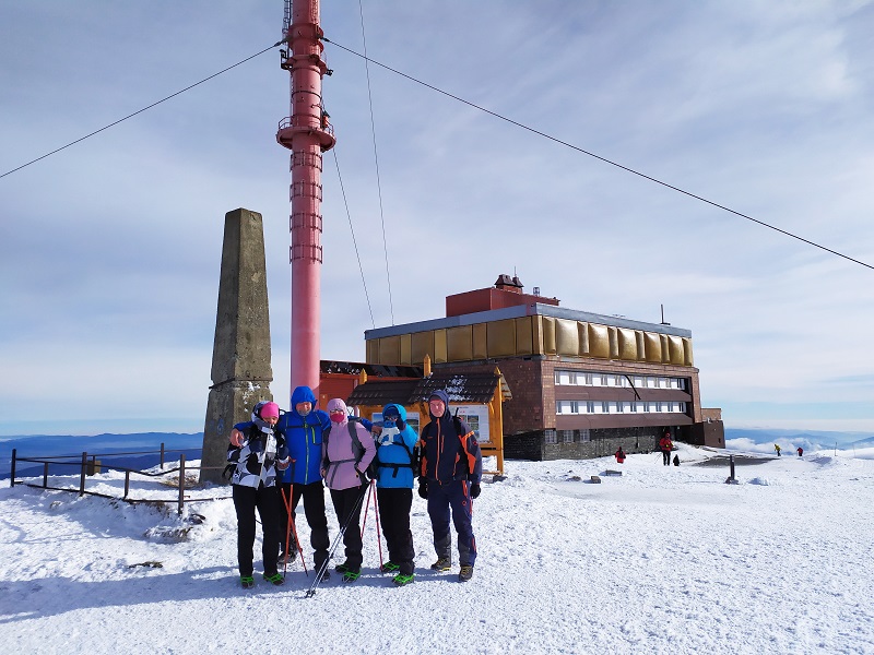 Hneď na začiatku výstupu sme sa rozdelili na dve skupinky. Poniektorí zvolili výstup pomerne dlhší, no menej náročný. Ich kroky smerovali po horskej ceste, ktorá vedie až na vrchol. Neslúži na verejnú dopravu. V cieli sa týči od roku 1960 televízny a rozhlasový vysielač.