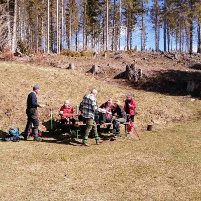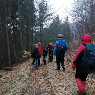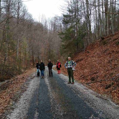 Aj keď nás je pomenej, sú z nás dve skupiny. Počkáme sa, dáme krátku prestávku a hor sa na Vartu! Keďže je príjemne a máme čas, turistickú značku ignorujeme a stúpame ďalej po lesnej ceste.