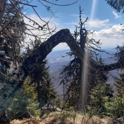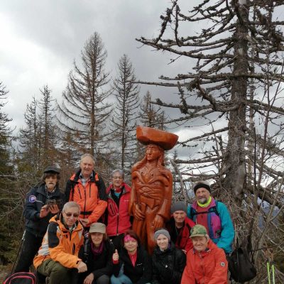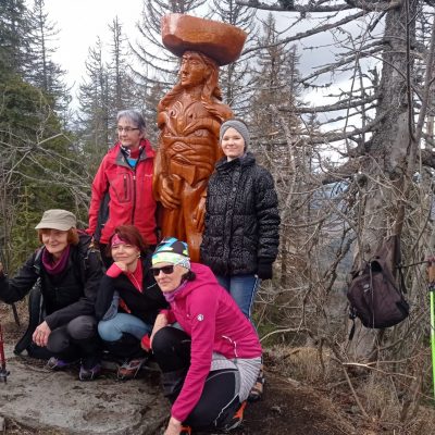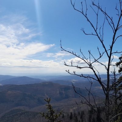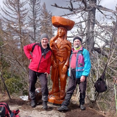 Začína sa objavovať sneh, skaly budú iste klzké. Výstup bol trochu náročný, ale všetci sme ho zvládli bez ujmi na zdraví. Konečne si môžeme vychutnať nádherné výhľady. Vďaka dobrej viditeľnosti sme dovideli až do Maďarska. A je čas na spiatočnú cestu.