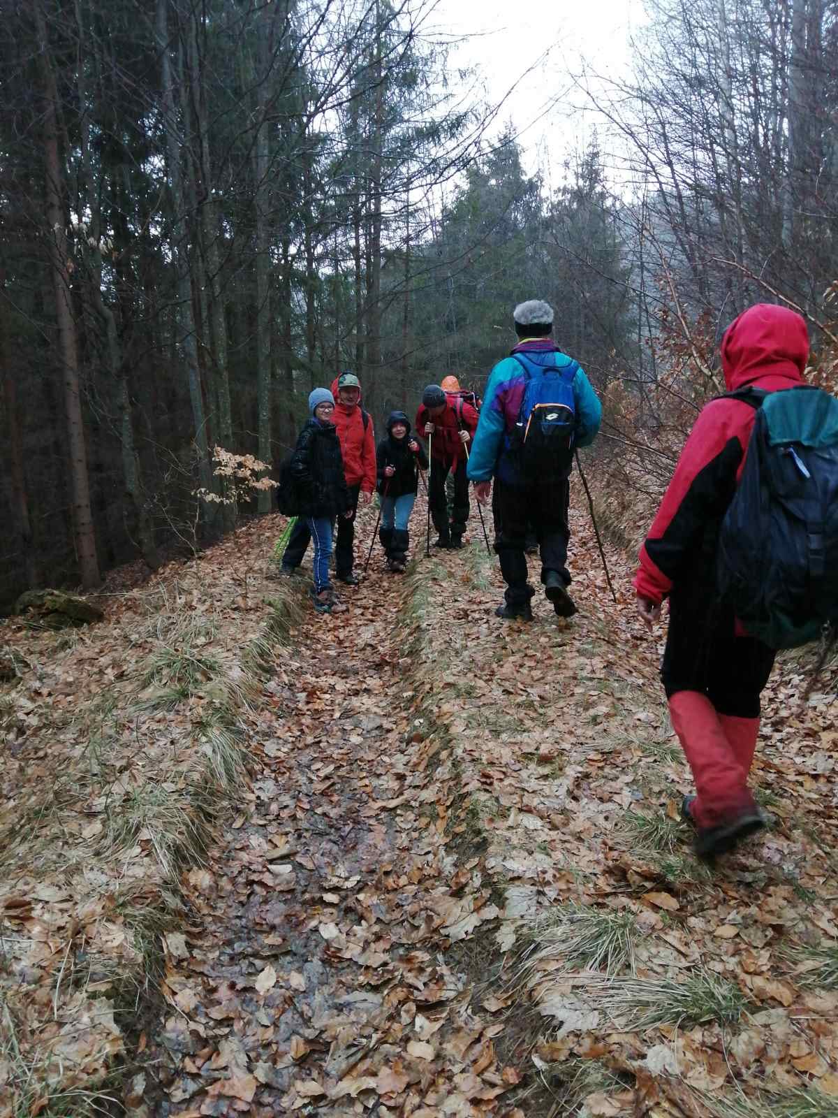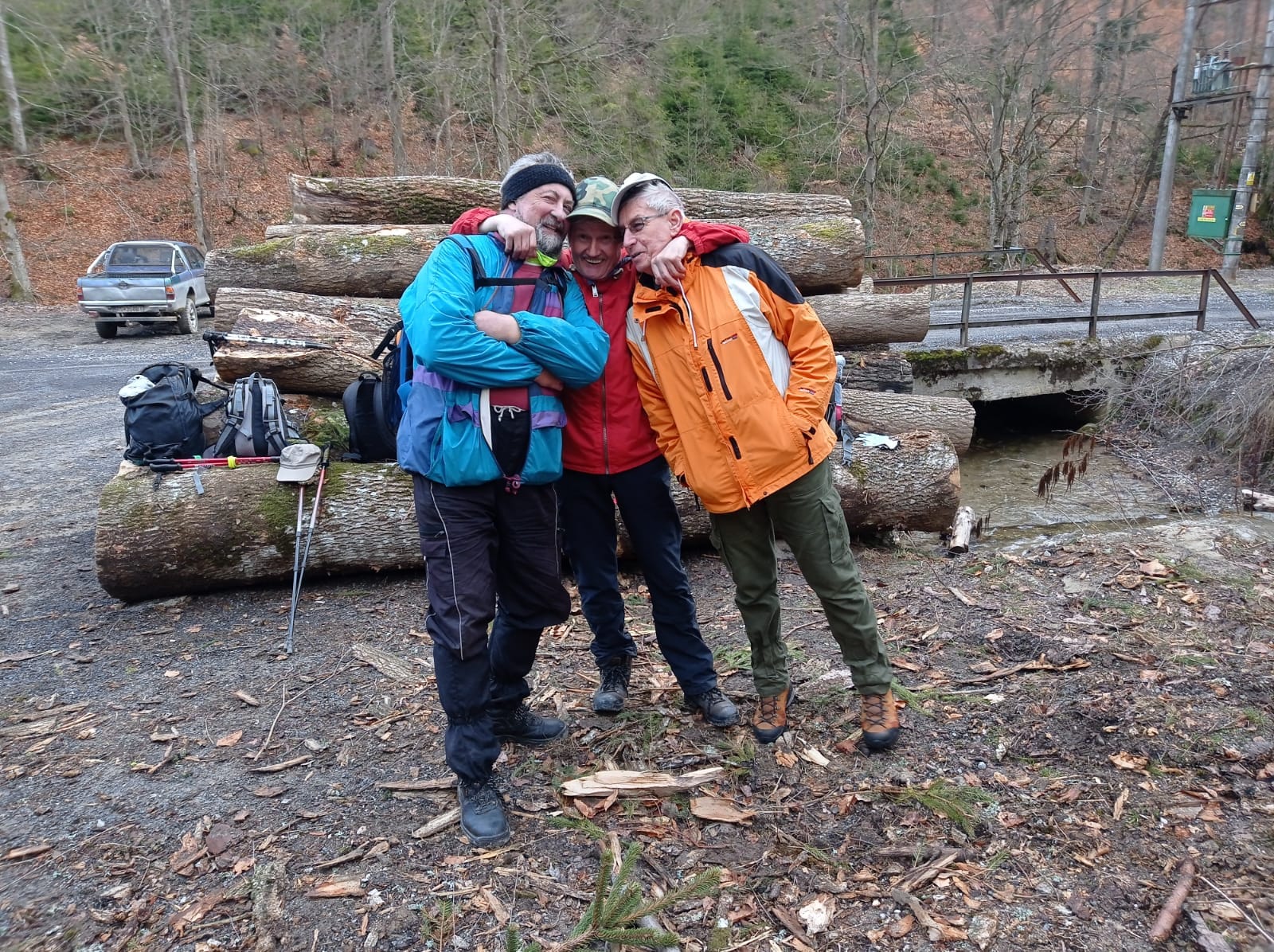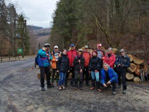 celú noc pršalo a ráno ešte mrholilo. V Skorušine z autobusu vystúpilo 12 odhodlaných „mesiačikov“. Zostava sa javí pohodová, aj keď máme dvoch špecialistov. Pretekára z Rimavskej Soboty a nášho blúdneho holanďana so záľubou strácať sa. Dáme spoločné foto, vedúci akcie nás privítal krátkym príhovorom s upozornením, že sa prebúdzajú medvede a máme sa držať pokope. Všetko je jasné, môžeme začať stúpať hore dolinou.