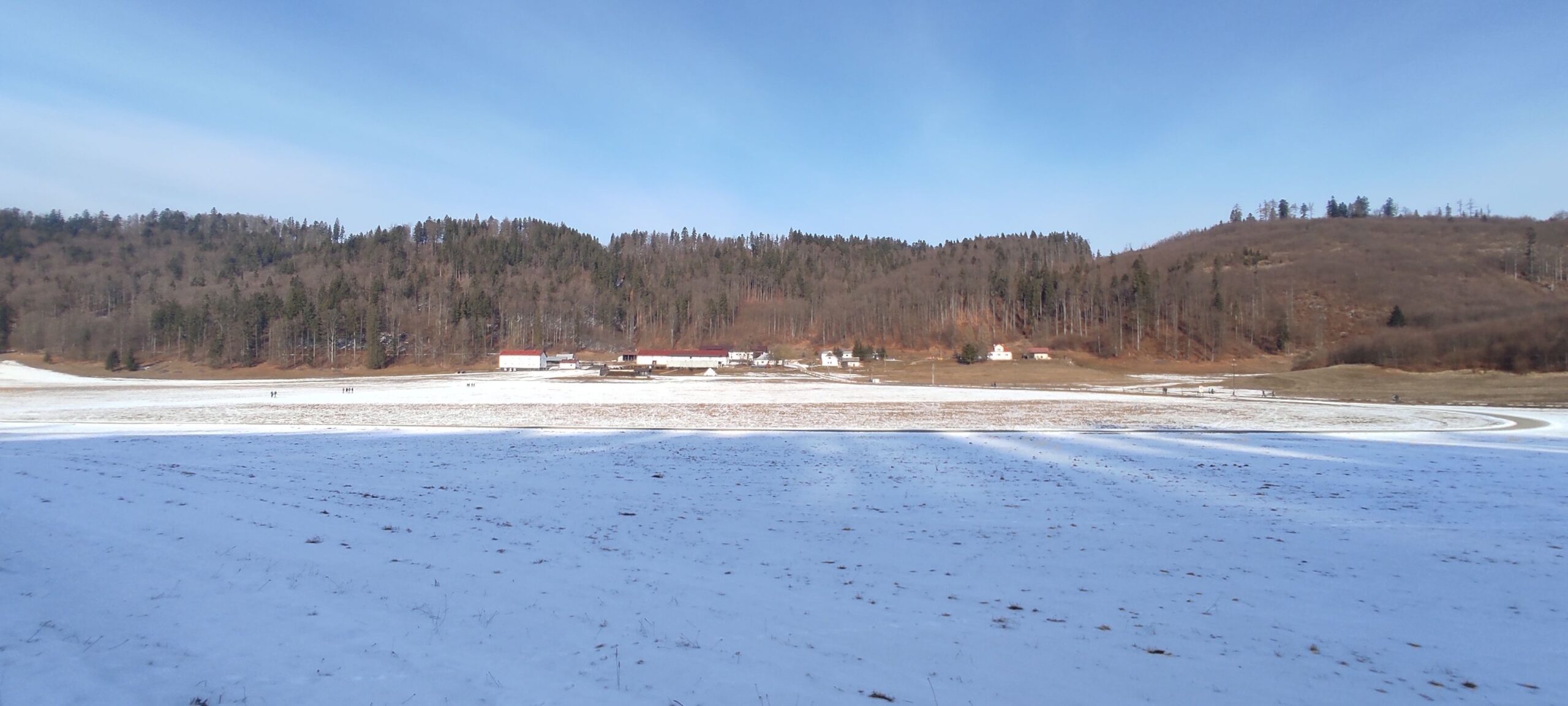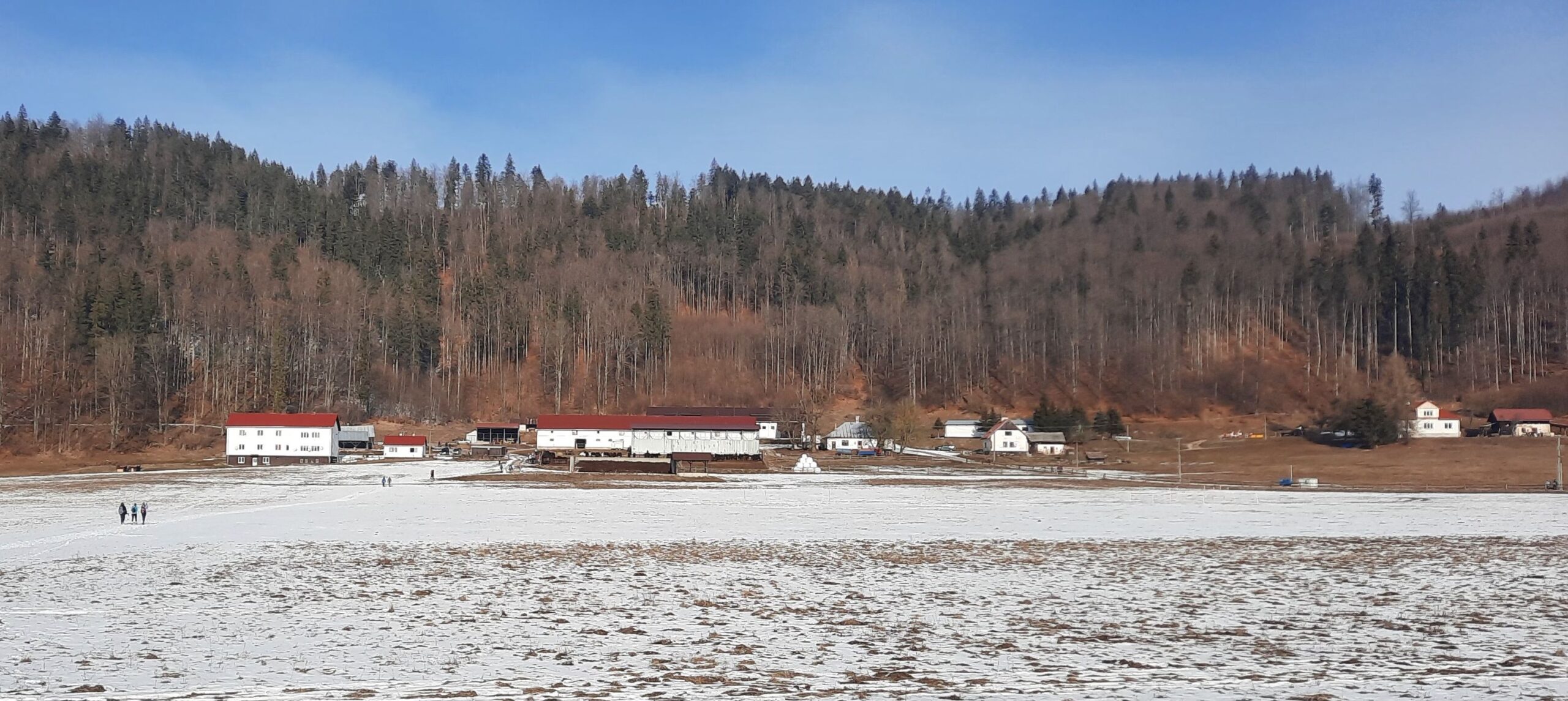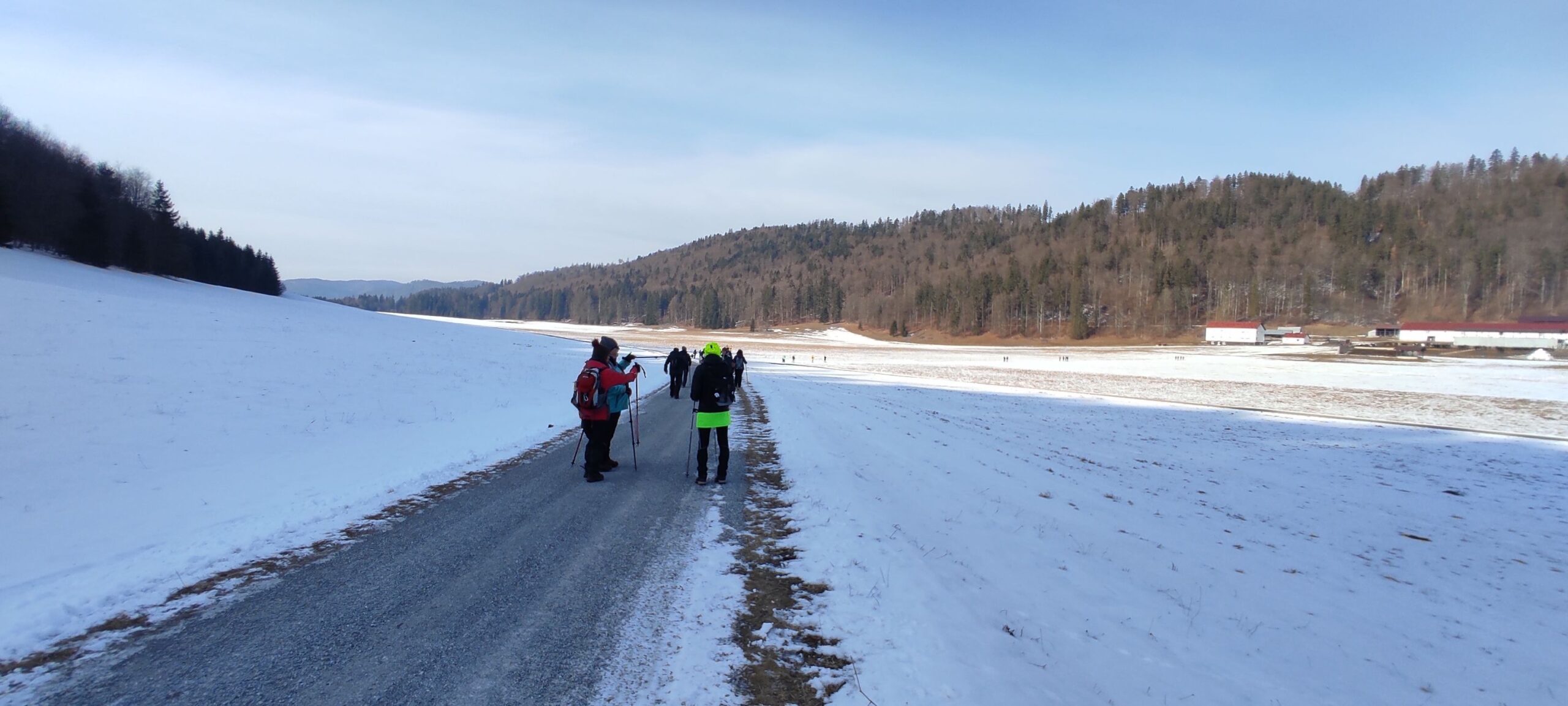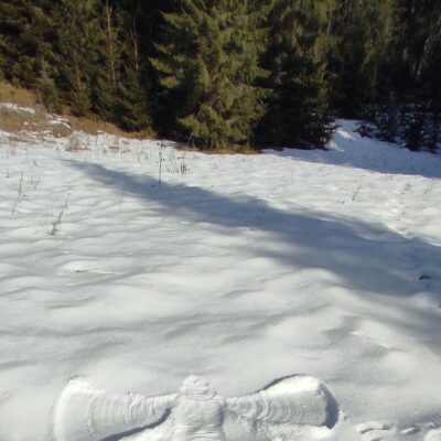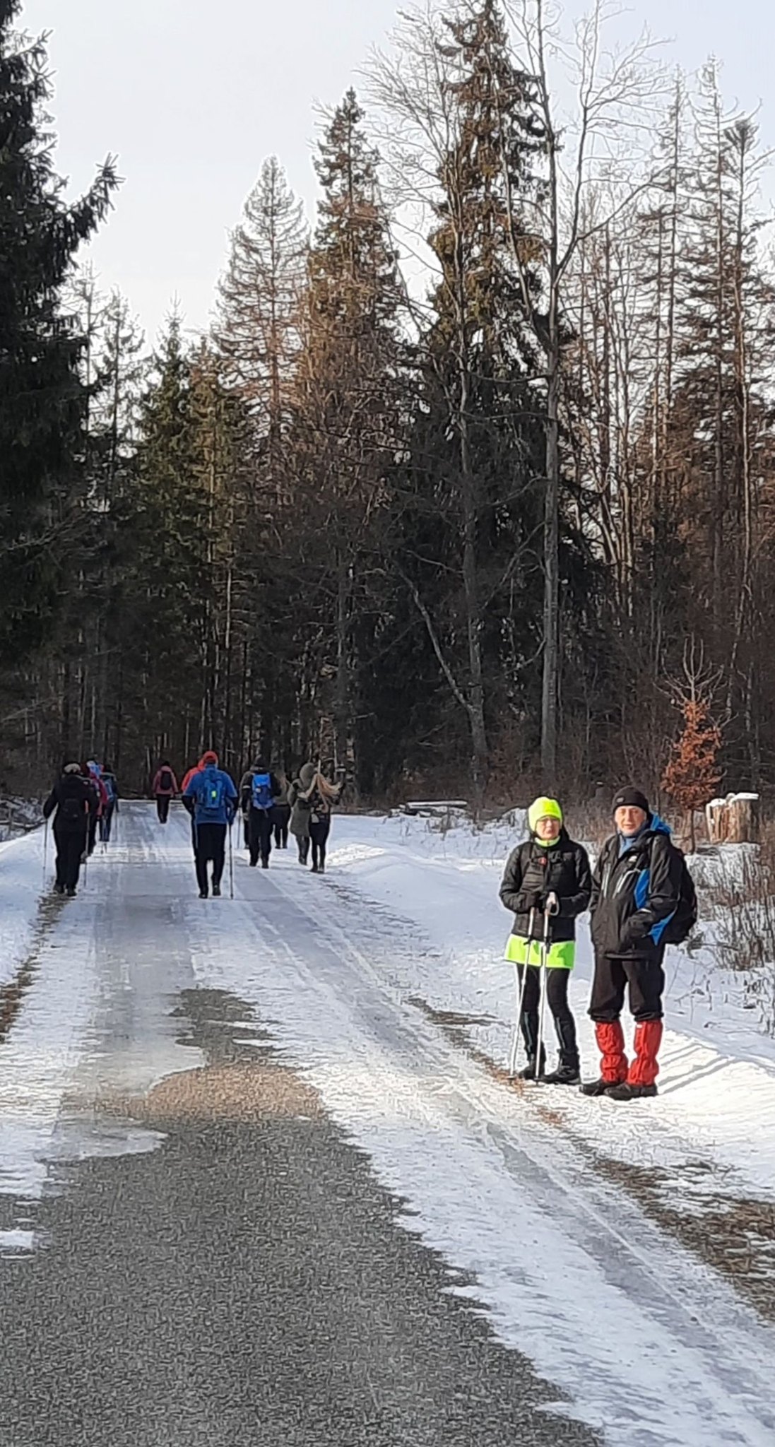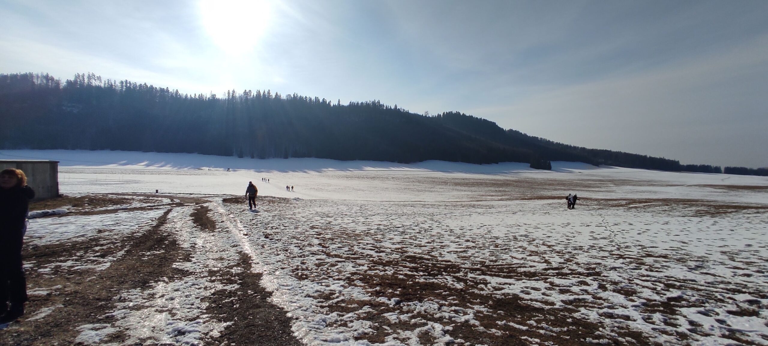 Snehu pomenej, aj to len po lúkach, cestu miestami zdobil ľadový koberec.