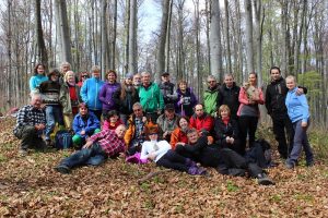 A je to tu! Pred nami prvé prudšie stúpanie. Nič neprekonateľné, ale na zahriatie stačí. Z modrej prechádzame na žltú. Prvé jarné kvietky, hora v novom šate, za nami Tŕstie, v diaľke Sinec. Nebyť prekážky z plotu, ktorá nás delila od turistického chodníka, boli by sme na vrchu bývali o čosi skôr, ale aj tak sme to napriek prekážke všetci zvládli.