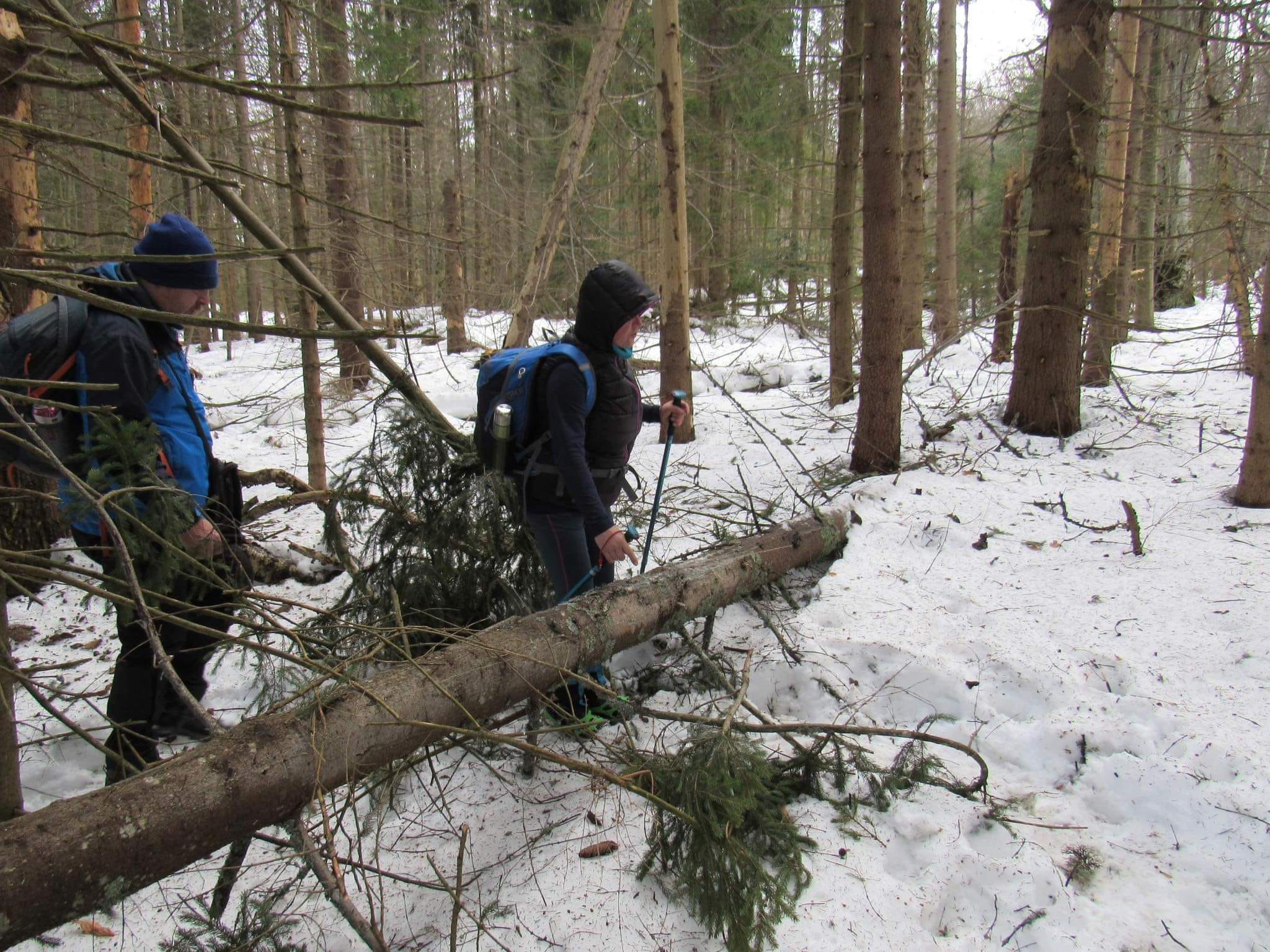 Postupne sa začínali naskytovať výhľady na okolité, bližšie, aj vzdialenejšie vrchy, pohoria. Rukopis veterných dní sme videli aj na samotnom Tŕstí – popadané stromy zmenili okolitý terén, na ktorý sme boli zvyknutí a vytvorili pre nás celkom slušné preliezačky a obchádzky.