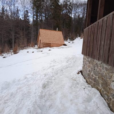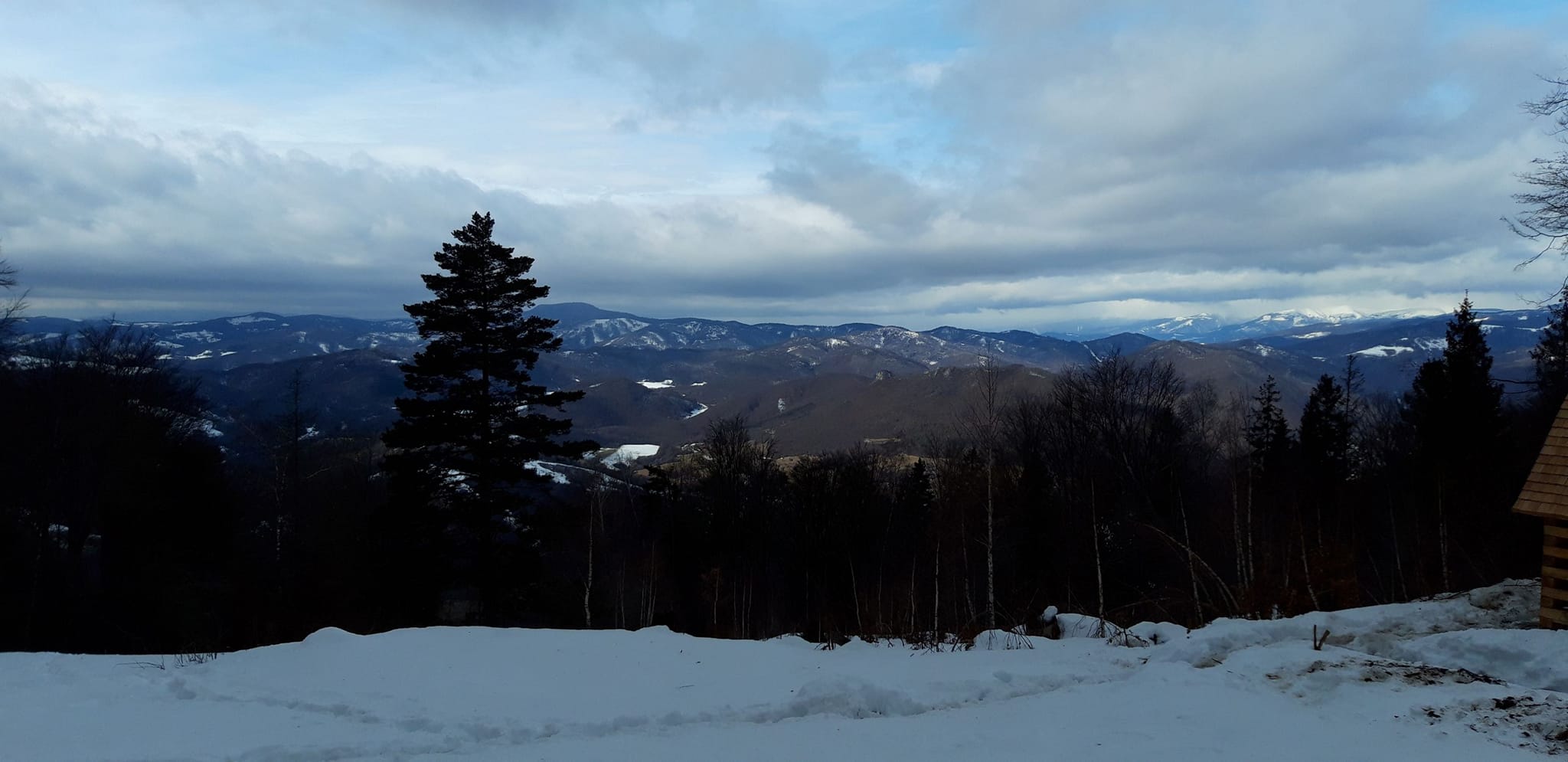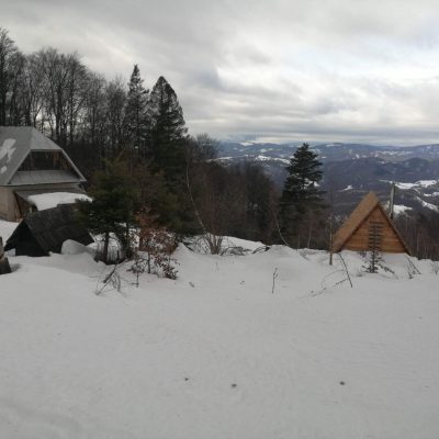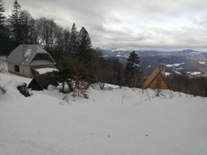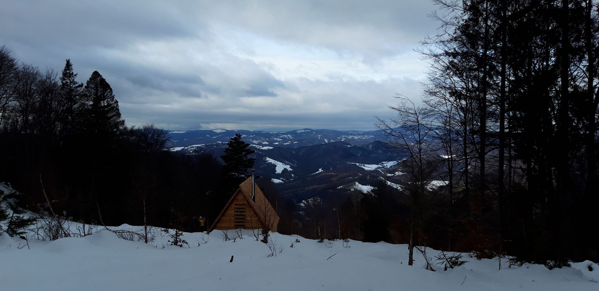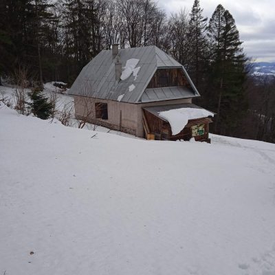 Chata a nová útulňa Sláviček, učupené vo vyše polmetrovom snehu pozerali do doliny, na Klenovský Vepor, či Fabovu hoľu.