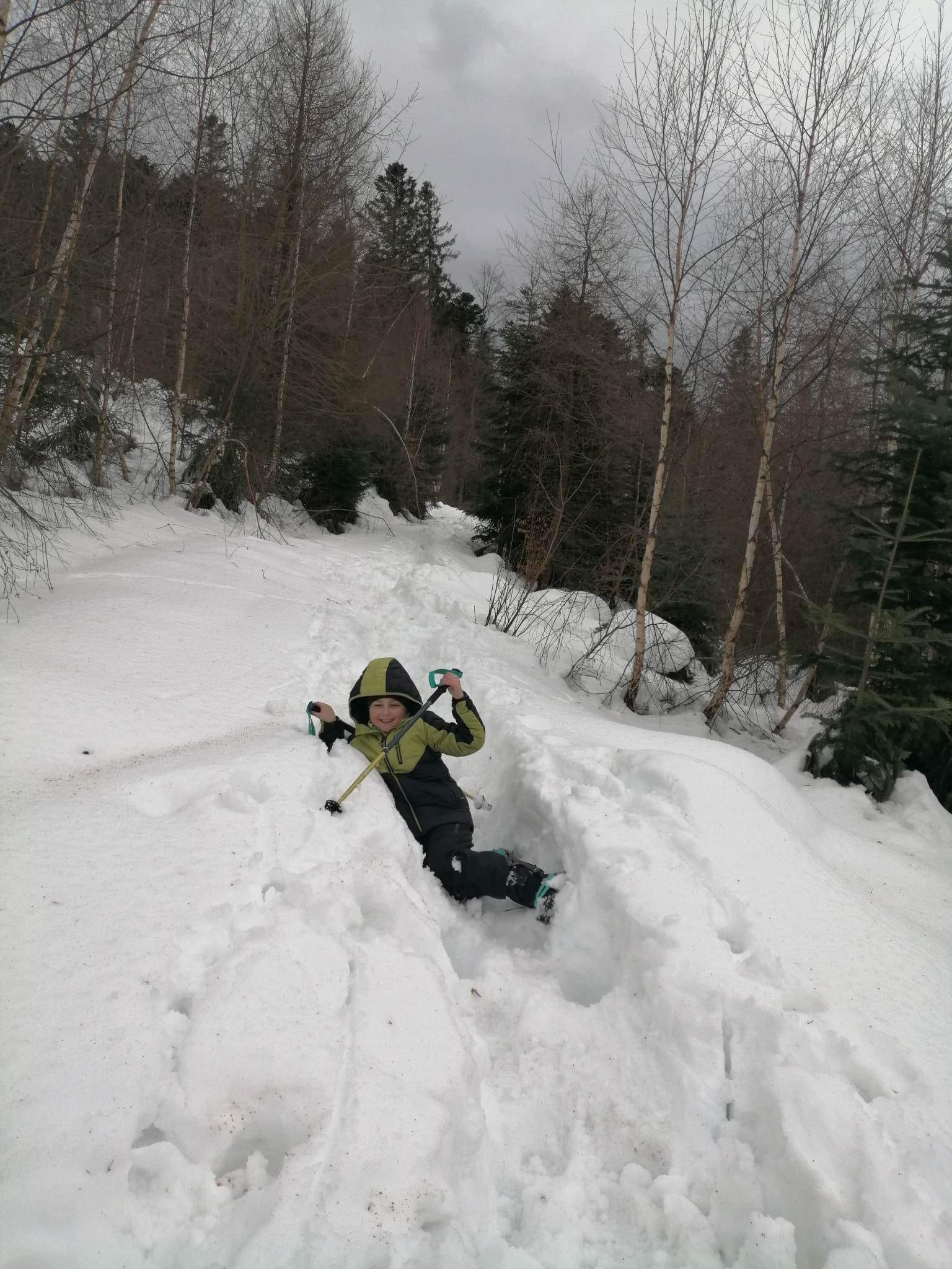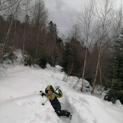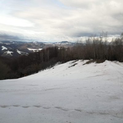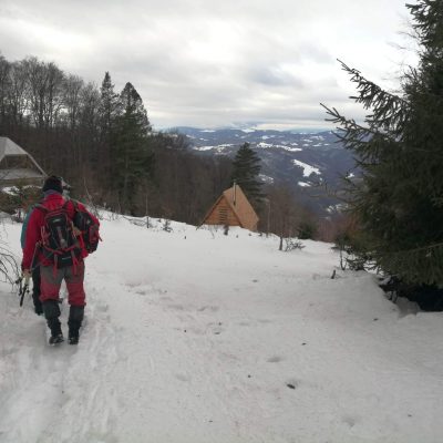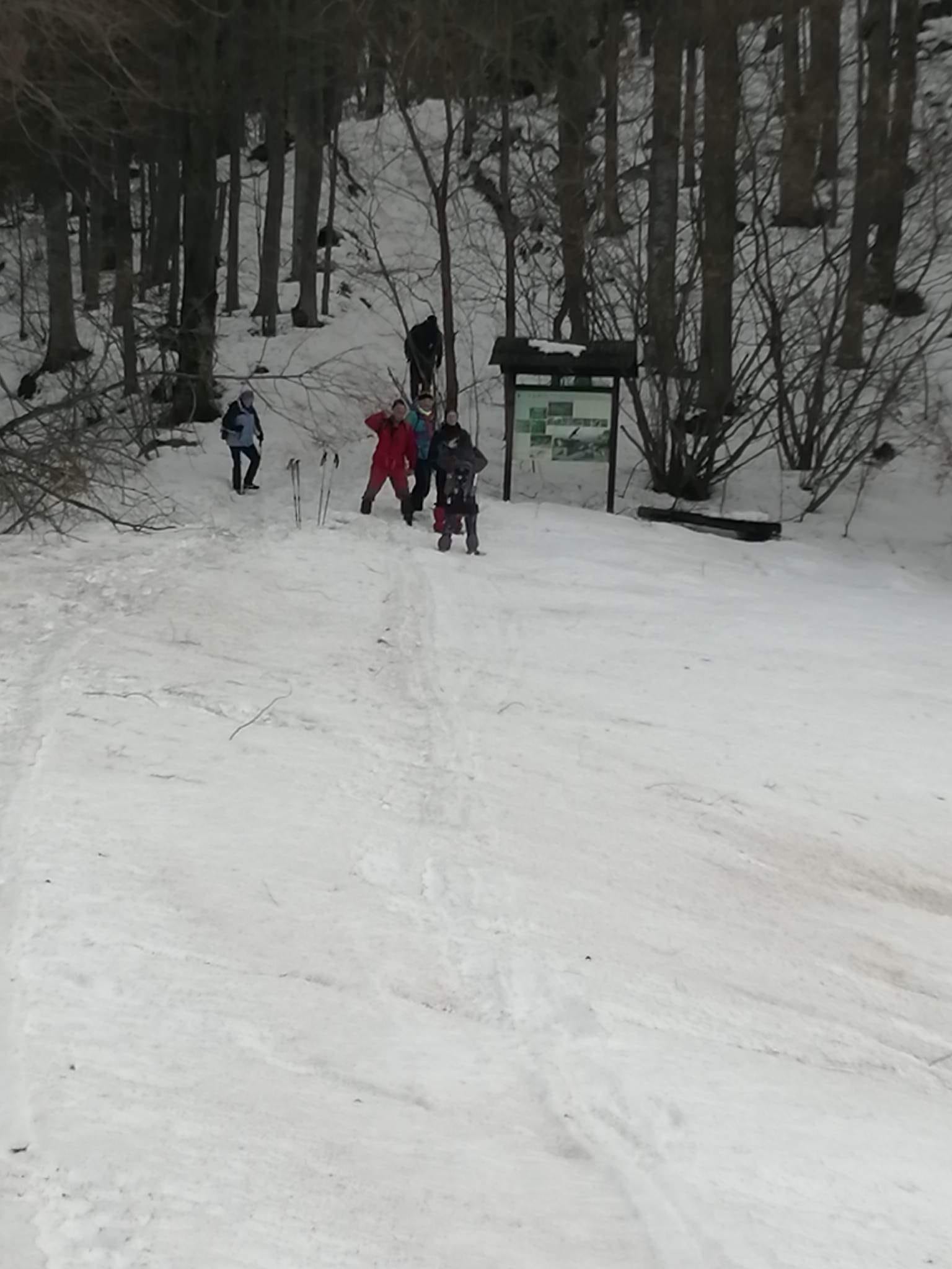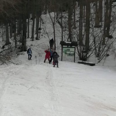 V príjemnom teple v chate sme si odpočinuli, trošku osušili a čochvíľa sa vydali na cestu naspäť. Vetrík, občas aj silnejší vietor nás nárazmi poháňal dole, do doliny. V odmäknutom snehu sme sa šťastne došmýkali až do Tisovca.