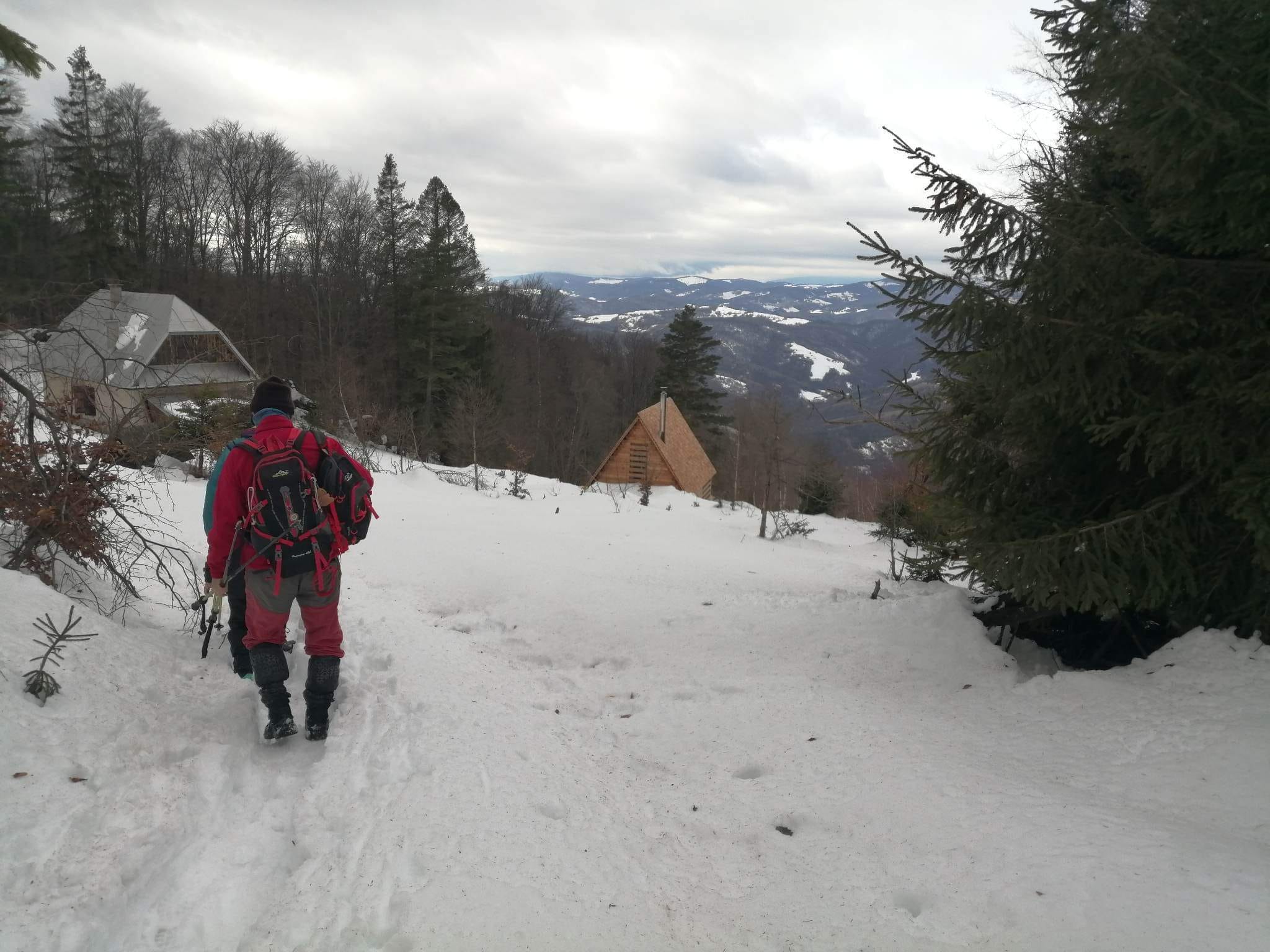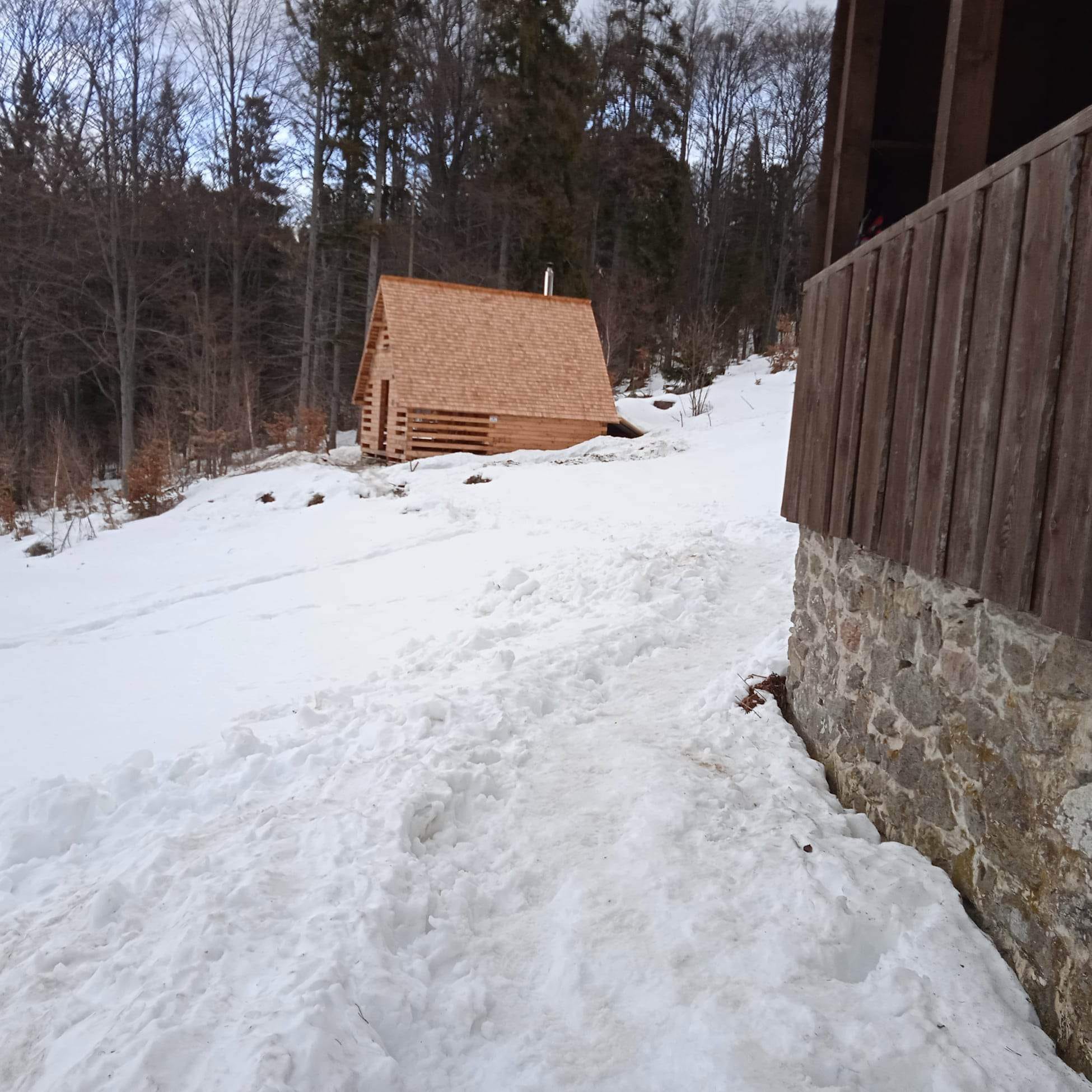 Chodník v snehu nás kľukato, avšak bezpečne priviedol až k chate.