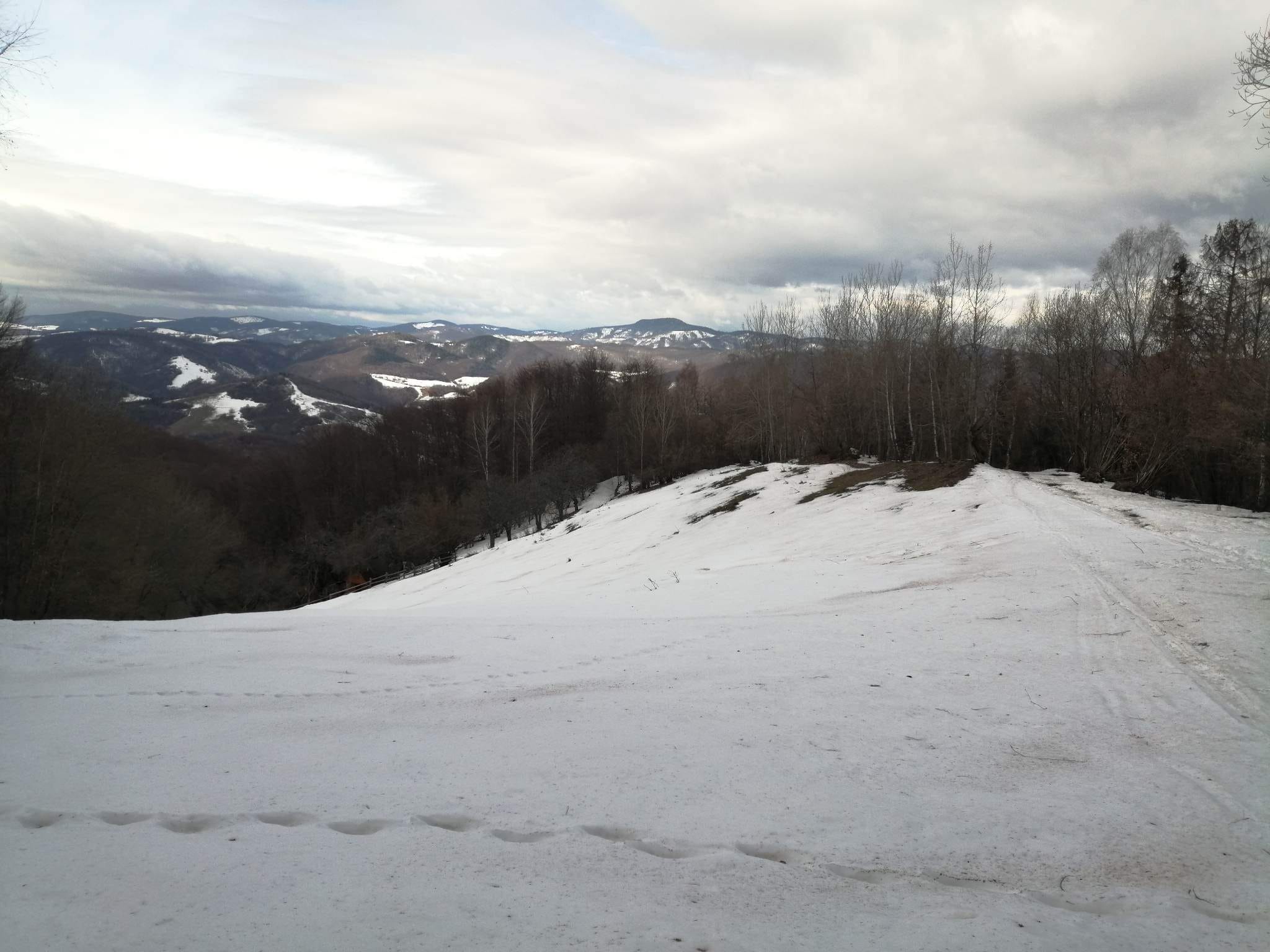Lúky nad Tisovcom boli už bez snehu,  premočené, aj s potôčikmi z topiacich sa zvyškov snehu.