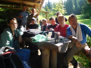Ani sa nenazdáme a vyjdeme na lúku pred chatou pod Hrbom. Tu sme sa všetci počkali, dali spoločné foto a pomaly cestou schádzame k Starému Majeru, kde nás čakal autobus. Do Ľubietovej by to bolo ešte 5 km po asfaltke takže sme radi, že prišiel pre nás až k Majeru.